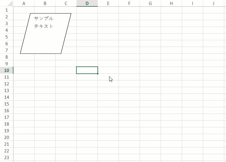 行または列が固定されている場合、スクロールするとシェイプが折り返されます。ただし、テキストは影響を受けず、そのまま同じ場所に残ります。