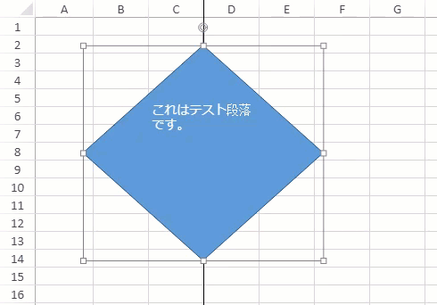 シェイプを回転させると、テキストエディタとテキストが回転します。