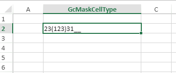 sheet.getCell(1, 1).cellType(gcDateTimeCellType);GcMaskCellType は、特定の書式またはパターンをセルに入力する必要がある場合に使用します。次の図に示すように、ユーザーは値を直接入力できます。